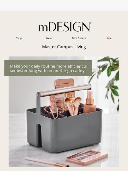 An inspirational email focused on bathroom organization, blending an aspirational tone with product suggestions to support brand messaging around home solutions.